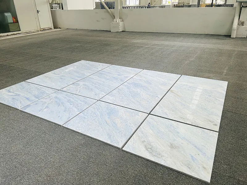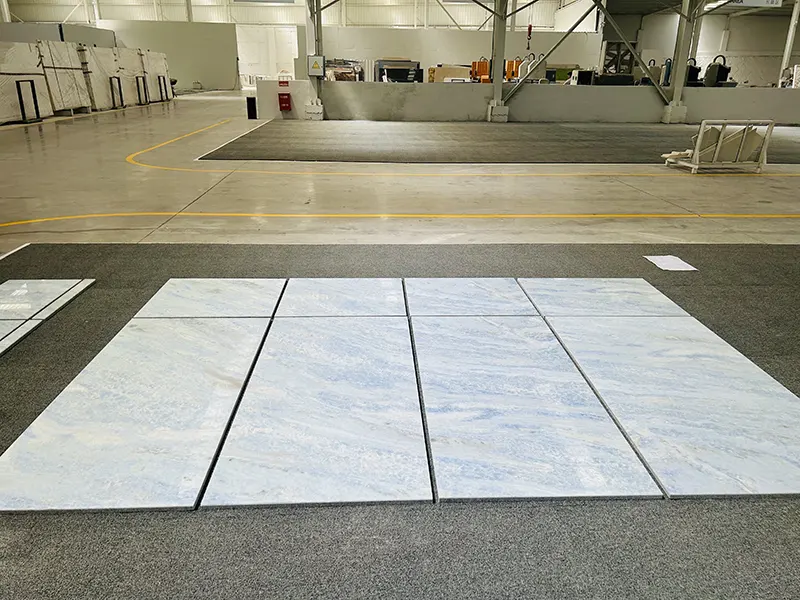 Wir bei Wow Stone sind stolz darauf, wie wir nicht nur Rohstoffe verkaufen, sondern auch, wie wir sie verwenden, um neue Dinge zu machen. Eine unserer besten Ideen ist es, Blue Crystal Marmor mit natürlichen Granit als Hintergrundmaterial zu verwenden. Diese Methode hält die Schönheit von Blue Crystal Marmor, während sie länger hält und weniger kostet.