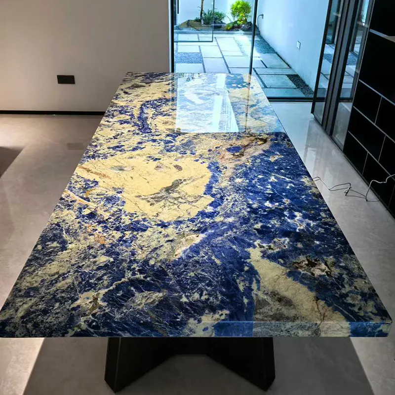 Bolivienblauer Granit leuchtet wirklich, wenn es um Möbel geht. Betrachten Sie einen blauen Granit -Benchtop oder eine Kücheninsel. Sie können viel Gebrauch standhalten, sodass sie ideal für die Küche sind. Sie bleiben wunderbar, auch wenn Sie direkt auf die Oberfläche schneiden oder heiße Töpfe auf sie legen. Der blau-graue Farbton ergänzt alles in Ihrer Küche. Was ist mit einem Couchtisch oder einem blauen Granit -Esstisch? Es ist vergleichbar mit dem Essen auf einem Werk der Naturkunst. Darüber hinaus ist ein Blue Granite -Couchtisch im Wohnzimmer ein großartiger Ort, um einige Zeitschriften und Getränke zu setzen, während sie sich mit Freunden unterhalten.