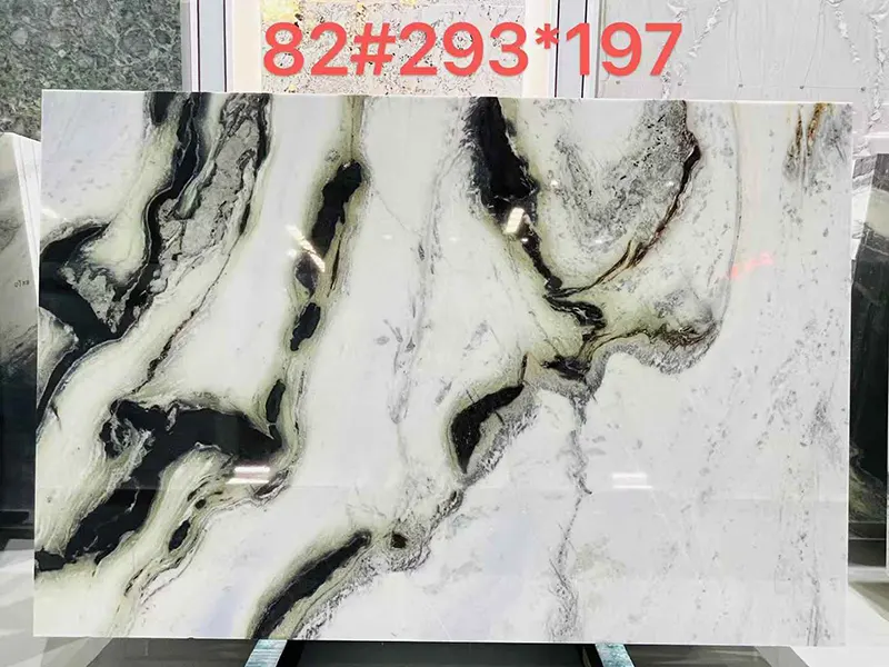Jede Panda-Marmorplatte hat ein einzigartiges Muster aus fließendem schwarzen „Panda-ähnlichen“ Streifen auf einer weißen Basis, ähnlich einer Steincanvas. Das künstlerische Flair wird weiter hervorgehoben, wenn Panda Marble Bookmatch -Techniken in Feature -Wänden oder Backsplashes verwendet werden.