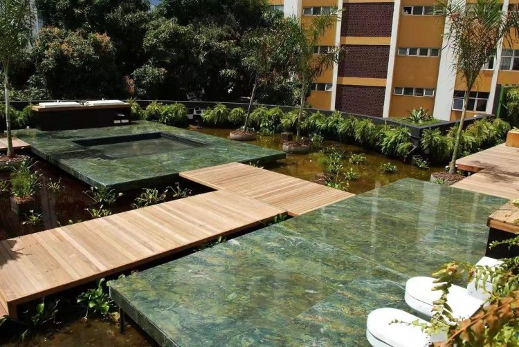 Es gibt ein bisschen Außenwelt mit grünem Marmor. Es ist ideal für die Herstellung eines friedlichen Heiligtums im Haus aufgrund seiner dichten Mustern und Waldfarben. Es ist beruhigend und natürlich nach einem langen Arbeitstag.