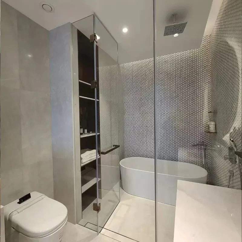 Absolut. Sein elegantes Aussehen und Feuchtigkeitsbeständigkeit machen es perfekt für Duschwände und Böden.